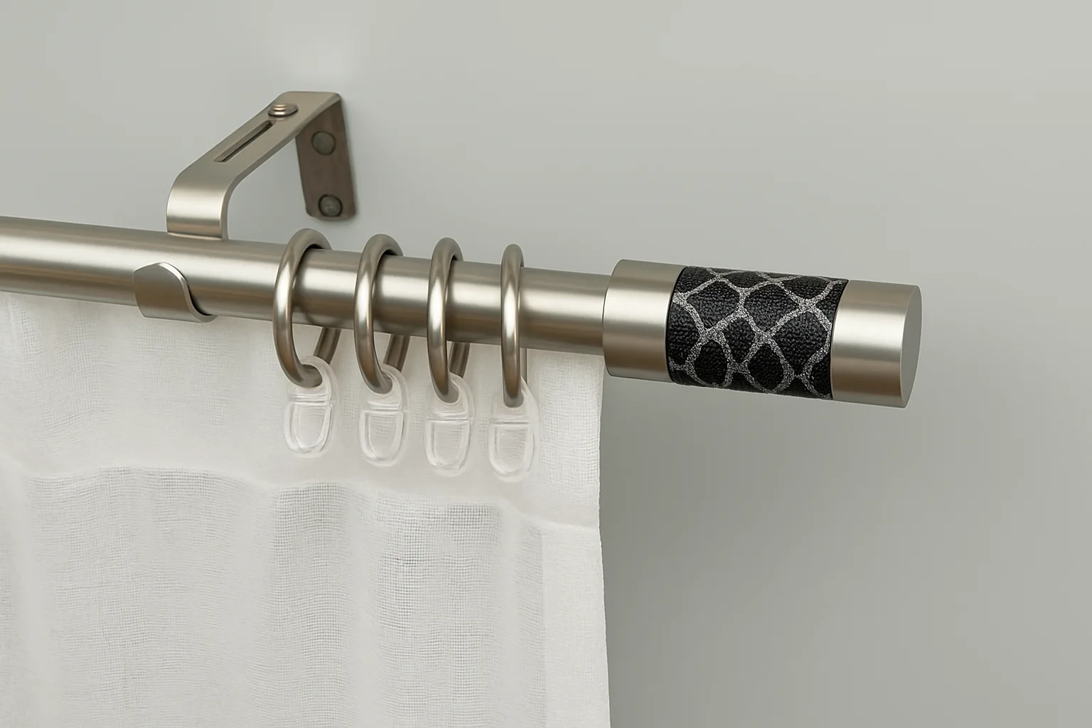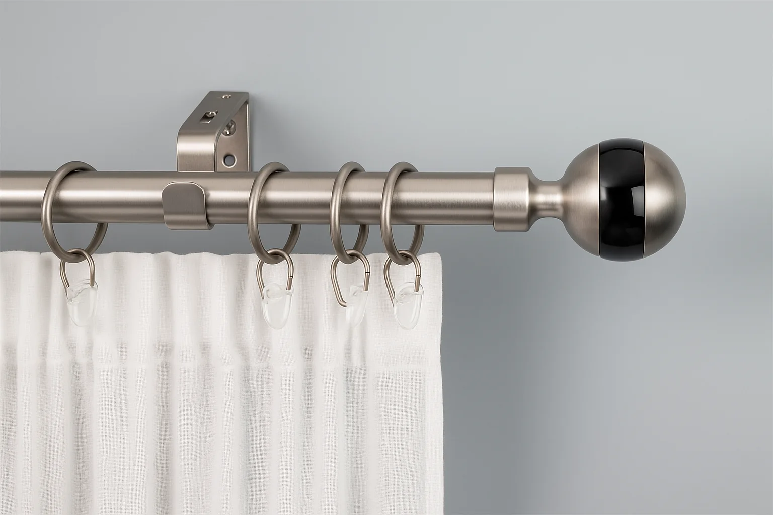 Karniša B143 i C012 spoj je jednostavnog dizajna i pouzdane izrade, izrađena od 100% niklovanog željeza. D savršeno se uklapa u moderne i tradicionalne interijere. Robusna konstrukcija osigurava stabilnost i dugotrajnost, dok se jednostavan sustav montaže prilagođava različitim prostorima i stilovima.
