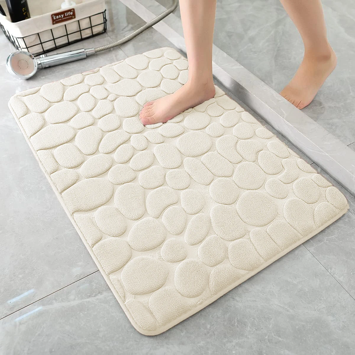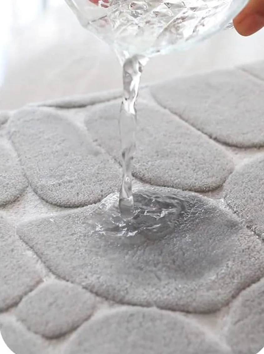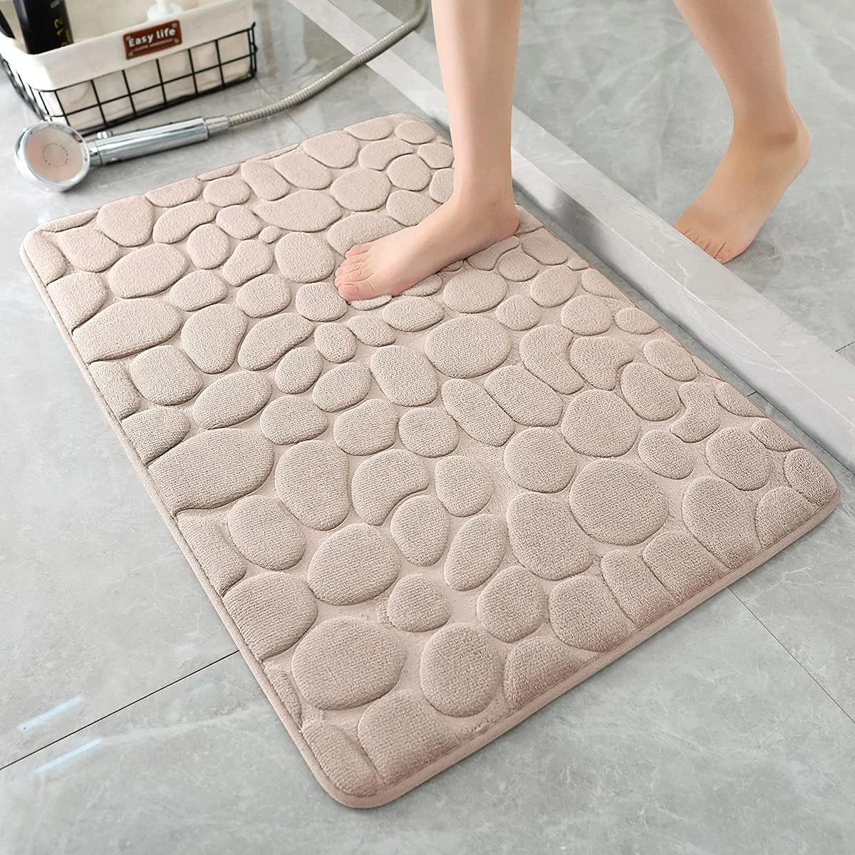 Memory Stone kupaonska prostirka spoj je modernog dizajna i maksimalne udobnosti. Površina inspirirana oblutcima ne samo da estetski podiže prostor, već pruža i blagi masažni učinak pri svakom koraku. Ispunjena memorijskom pjenom, ova prostirka savršeno se prilagođava stopalima, dok neklizajuća podloga osigurava stabilnost na glatkim pločicama. Idealna je za one koji traže funkcionalnost i sofisticiran izgled u svojoj kupaonici.